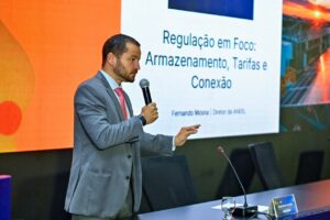 Fernando Mosna, Mosna apresentou o avanço do debate regulatório sobre armazenamento, com destaque para a Consulta Pública nº 39/2023, que busca estruturar as bases para a integração dos sistemas de baterias ao setor elétrico. A consulta trata da definição do armazenamento como recurso energético, das modalidades de operação — autônoma, associada ou colocalizada —, das regras de remuneração e das condições de acesso à rede.