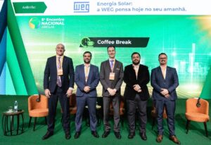 Jonas dos Santos, representante da WEG, falou em nome da empresa anfitriã, enfatizando a importância da união do setor privado. Reconheceu a atuação da ABSOLAR em Brasília na defesa da segurança jurídica e na mitigação de impactos de medidas provisórias, preservando o ambiente de investimentos. Apontou o armazenamento de energia como a próxima grande fronteira de crescimento do mercado, destacando a necessidade de capacitação e preparação das empresas para essa nova fase.